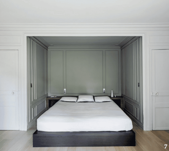 « Pour la rénovation de cette maison à colombages de la fin du XIXe siècle, nous avons sélectionné les éléments remarquables afin d’adapter notre intervention en suivant l’unité de l’ensemble de la maison tout en améliorant sa fonctionnalité ». À l’intérieur, le duo a conservé les éléments clés de la disposition et de la décoration d’origine qui donnent à la maison son caractère authentique, tout en gommant ou en ajoutant d’autres par souci d’uniformité et de fonctionnalité. « Au rez-de-chaussée, nous avons supprimé une partie de la cloison existante afin de relier les principaux espaces de vie tels que le salon, la salle à manger et la cuisine ». La fonctionnalité de l’entrée, désormais séparée de la cuisine, a également été améliorée grâce à un nouveau mobilier intégré qui offre un espace de rangement. Les plafonds ornés du rezde-chaussée et les moulures murales de toute la maison ont été restaurés et peints en blanc cassé. « Au premier étage, nous avons suivi le même principe, en identifiant les éléments caractéristiques négligés lors des précédentes modifications, notamment les magnifiques alcôves existantes »,expliquent les concepteurs, qui n’ont pas négligé les cheminées d’angle. Dans les chambres, ils ont ainsi profité des alcôves existantes pour encastrer les lits… De la même manière, l’alcôve de la salle de bains accueille douche et baignoire. Pour autant, les espaces nuits ont été rénovés dans un esprit contemporain, en améliorant également leur clarté et leur fonctionnalité.