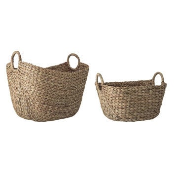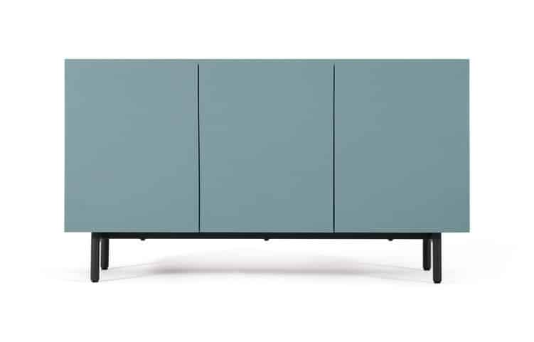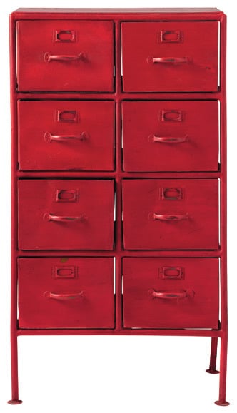 Commode Nanou, 3 tiroirs à glissières métalliques, structure anneaux de particules, pieds en bois massif, P.41 x L.81 cm x H.79 cm, 130 € environ ; malle sur pied Mally, bois et polyester, H.45 x L.50,5 x P.36 cm, 39 € environ.